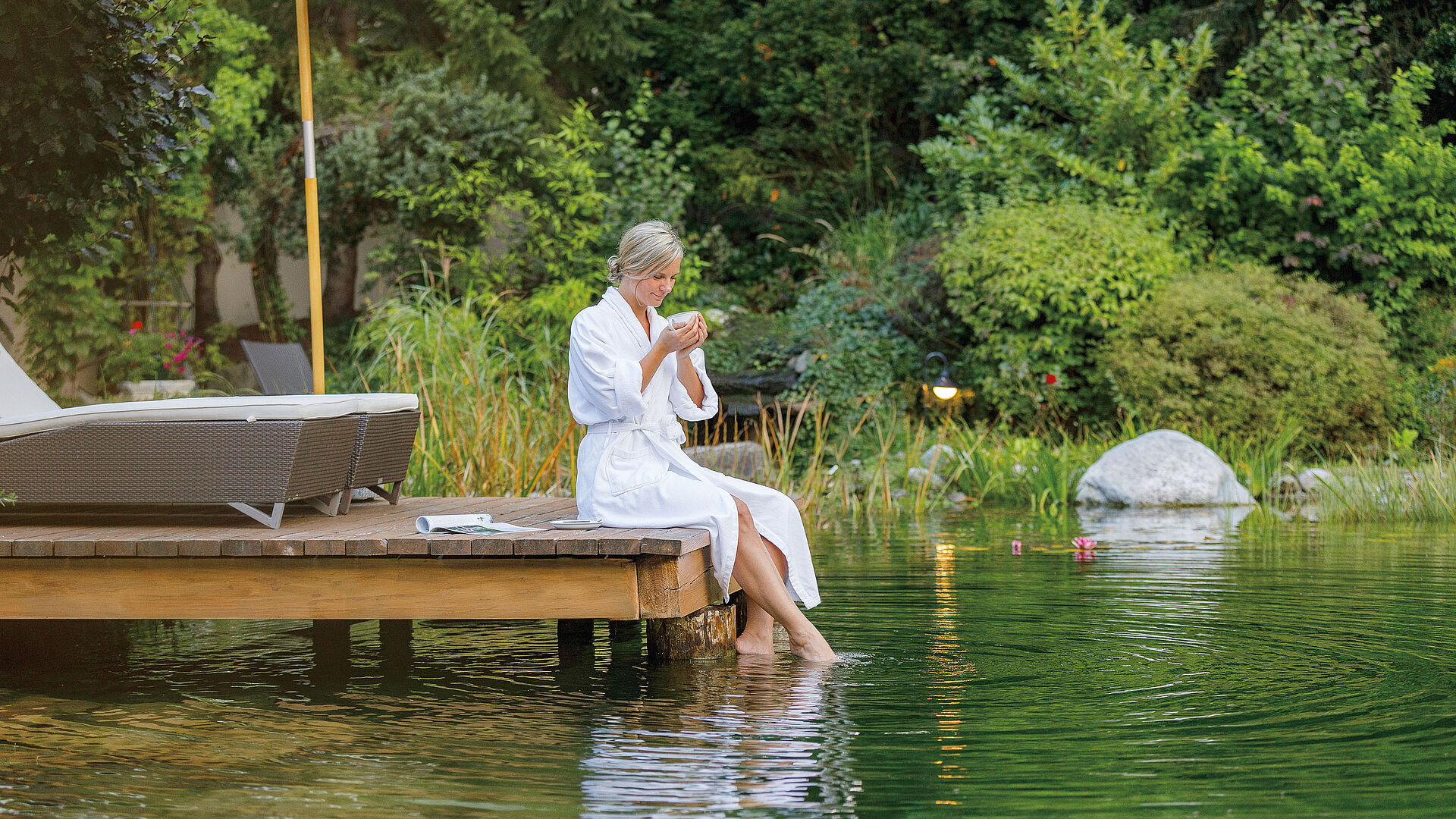 Augen zu und durchatmen. Die frische Bergluft inhalieren. Die Vögel zwitschern, der Wasserfall rauscht. Ein Sprung in den kristallklaren Teich, sich auf der Sonnenliege aufwärmen und die Seele baumeln lassen. In der Garten-Oase des Salzburgerhofs fällt das relaxen leicht. Wenn draußen der Schnee liegt, dann wird die Entspannung einfach in das mit zwei Relax-Guide Lilien ausgezeichnete Wellness Schlössl verlegt.