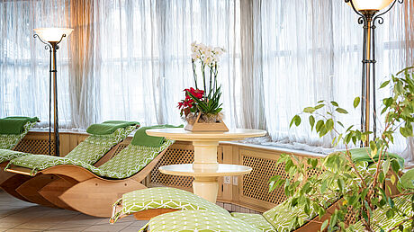 Sie möchten weiter in der antiken Zeit schwelgen? Lehnen Sie sich auf den römischen Liegen im Tepidarium zurück. Wie auch die Wände und der Boden werden die Bänke beheizt, sodass Sie im Bademantel bei 38 °C bis 40 °C einige Stunden loslassen können. Auch das Laconium ist kreislaufschonend. Der Boden wird auf etwa 60 °C beheizt, wodurch die Wärme den gesamten Raum ausfüllt. Saunaliebhaber, die bei hohen Temperaturen schwitzen, können sich in der finnischen Sauna im Freien zurückziehen.