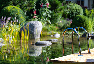 Augen zu und durchatmen. Die frische Bergluft inhalieren. Die Vögel zwitschern, der Wasserfall rauscht. Ein Sprung in den kristallklaren Teich, sich auf der Sonnenliege aufwärmen und die Seele baumeln lassen. In der Garten-Oase des Salzburgerhofs fällt das relaxen leicht. Wenn draußen der Schnee liegt, dann wird die Entspannung einfach in das mit 3 Relax-Guide Lilien ausgezeichnete Wellness Schlössl verlegt.